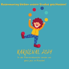 Liebe Tänzerinnen und Tänzer, an Rosenmontag (3.März 2025) bleibt unser Studio geschlossen. An den anderen Karnevalstagen freuen wir uns