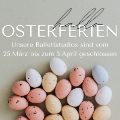 Das Team der Ballettschule wünscht allen großen und kleinen Tänzerinnen und Tänzern frohe Ostern und eine schöne Ferienzeit. Während der Osterferien in NRW vom 3. bis 14. April sind unsere Studios geschlossen. Wir freuen uns schon darauf, danach wieder mit euch zu tanzen!